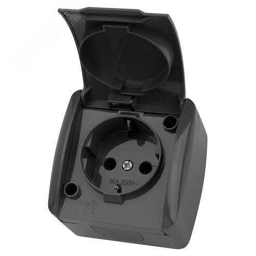 "Розетка 2П+3 открытой установки IP54 16А с крышкой серая ""Селигер"" TDM"
