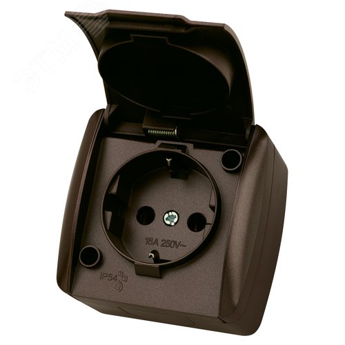 "Розетка 2П+3 открытой установки IP54 16А с крышкой шоколад ""Селигер"" TDM"