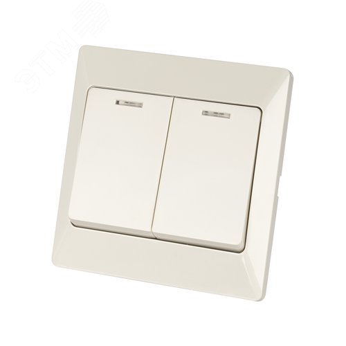 "Выключатель 2 кл. с подсветкой 10А сл. кость ""Ильмень"" TDM"